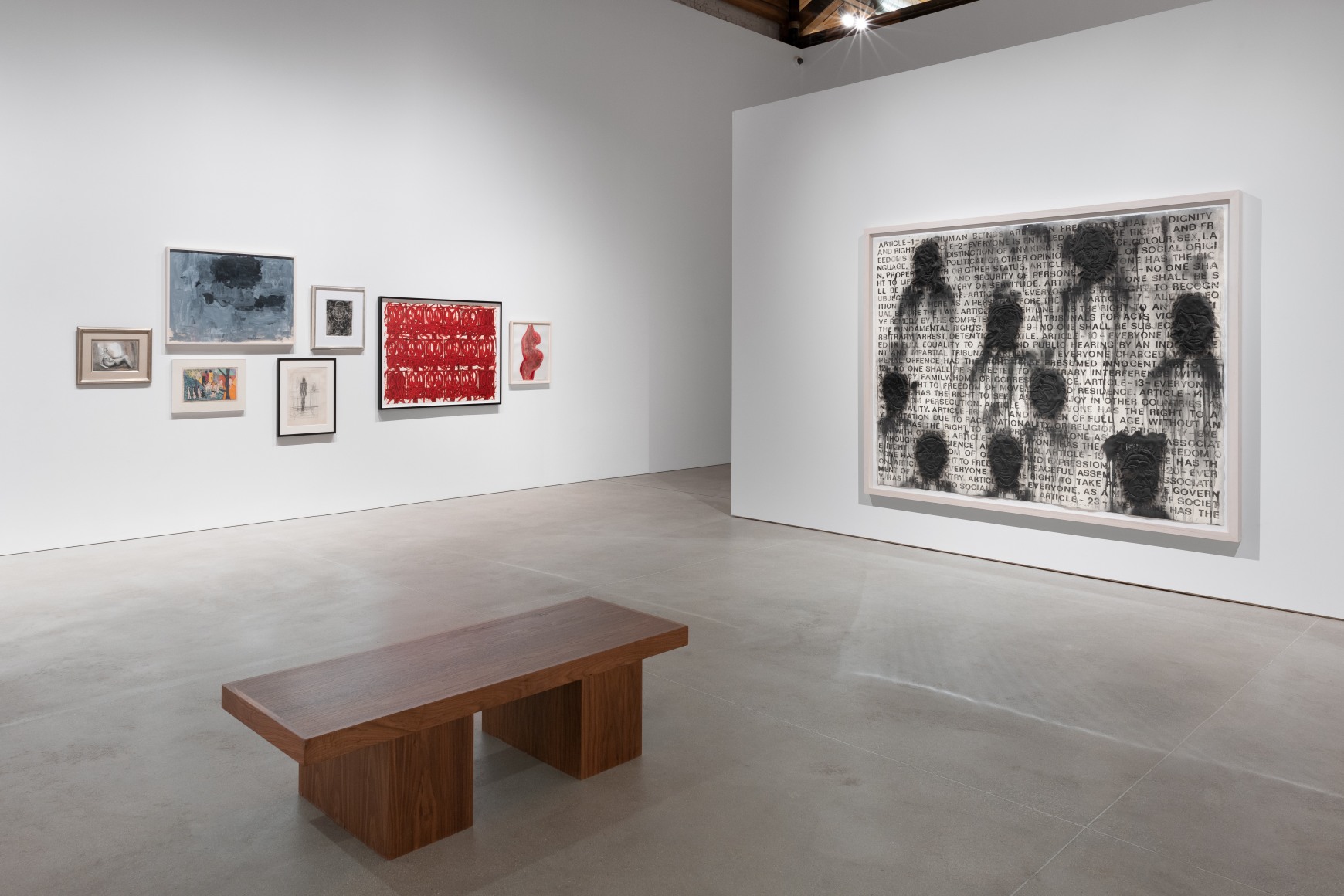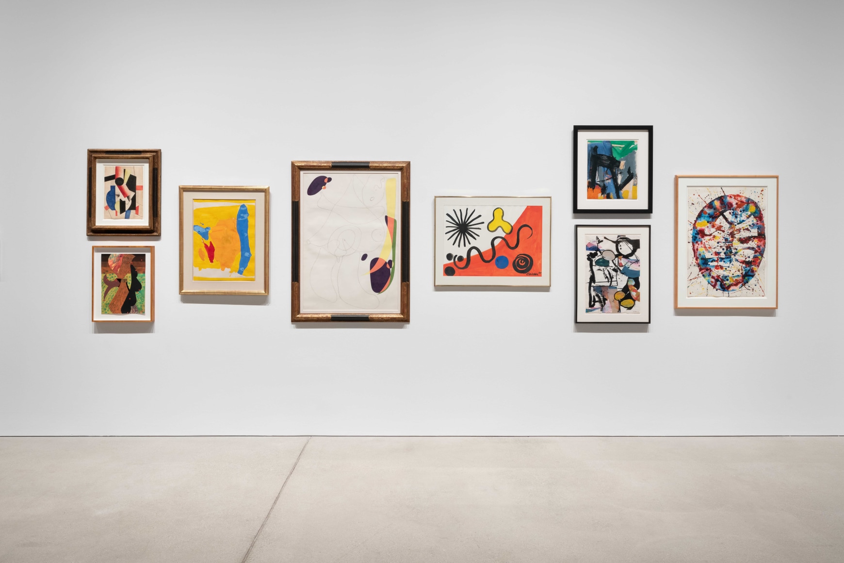 Reflecting on this history, GRAY at 60 makes space for Modernist, Abstract Expressionist, Pop, Contemporary, and other expansive practices to be shown along side one another. These transhistorical readings posit a logic for the works of Agnes Martin and Barnett Newman to hang alongside a tar paper work by Theaster Gates; for the colorful forms of Joan Miró, Jackson Pollock, Grace Hartigan, and Helen Frankenthaler to enter into dialogue with McArthur Binion’s and Carrie Moyer’s; for Pablo Picasso and Henri Matisse to converse with Alex Katz and David Hockney; for a balance between the sculptors Alexander Calder, Jaume Plensa, and Torkwase Dyson’s impressions in two dimensions; and for Rashid Johnson’s figures to join those by Jean Dubuffet, Alberto Giacometti, and Philip Guston. In considering these conversions of art-making across time, GRAY at 60 finds the medium of paper a fitting ledger with which to trace the years past and those to come.